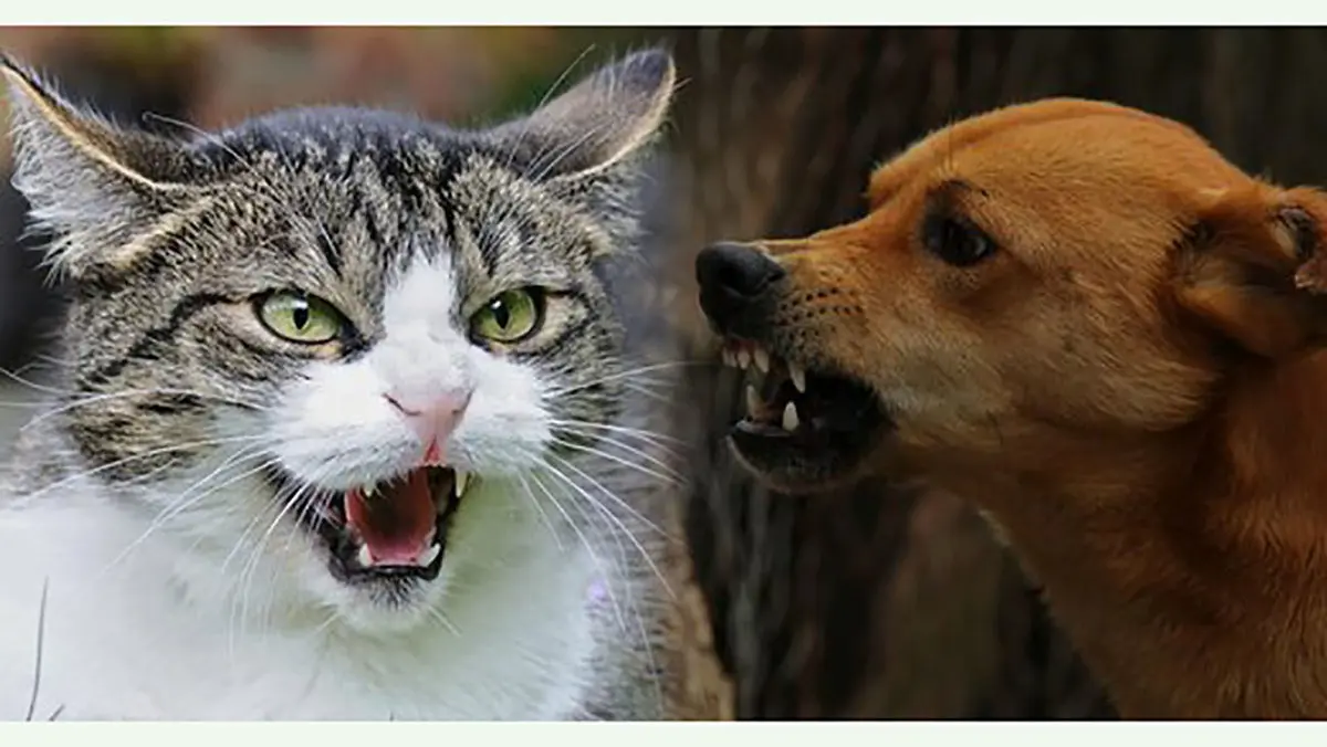 ویدئویی از حمله یک گربه به سگ و لگد زدن بامزه او را ببینید.