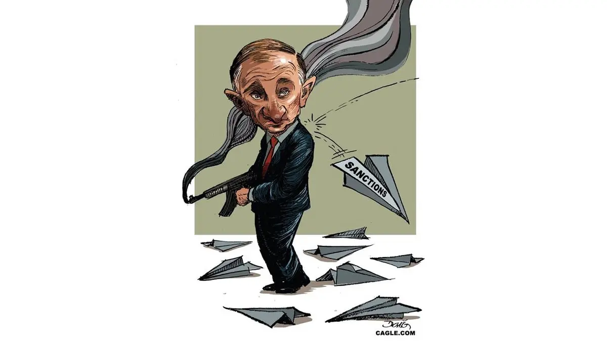 رفتار منفعلانه غرب در قبال جنایت پوتین و ارتش روسیه و وضع تحریم های بی اثر برای این کشور سوژه کارتونی از داریو کاستیلجوس در سایت کگل شد.