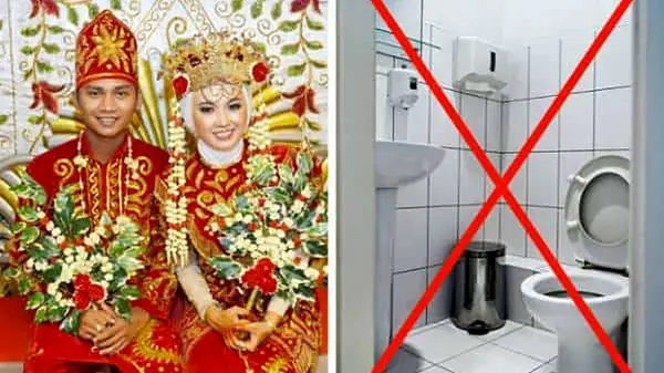 به گزارش رکنا، در کشور اندونزی این فرهنگ وجود دارد که زوج تازه ازدواج کرده تا سه روز نباید به دستشویی بروند و اگر این کار را انجام دهند برایشان بد شانسی می آورد و به طوری که این زوج تحت نظر خانواده شان قرار می گیرند که مبادا این سنت را بشکنند، به همین دلیل هم آب و غذای بسیار کمی به آنها می دهند.