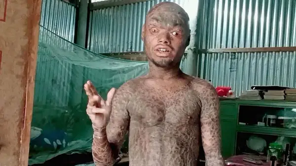 مجیبر رحمان مالک ۲۵ ساله اهل بیهار در بنگال غربی، از اریترودرمی رنج می‌برد، که التهاب شدید و بالقوه کشنده سطح پوست است.