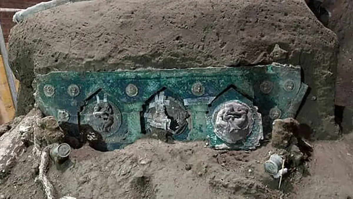 ارابهای چهار چرخ با اجزای آهنی، تزئینات برنزی، بقایای چوبی معدنی و نقشهایی از مواد آلی (طناب و تزئینات گل) به صورت تقریباً دست نخورده در شمال پمپئی کشف شد. این یک کشف استثنایی مربوط به رومیهای باستان در ایتالیا محسوب میشود.