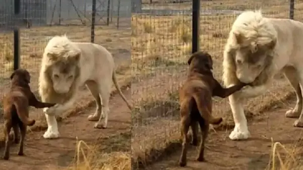 رکنا: مهربانی و احترام متقابل یک شیر و سگ نسبت به هم شما را شگفت زده می کند.