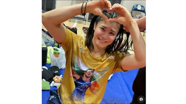 دلبری خانم کشتی گیر ژاپنی برای حسن یزدانی / فرستادن قلب با عکس کشتی گیر ایرانی