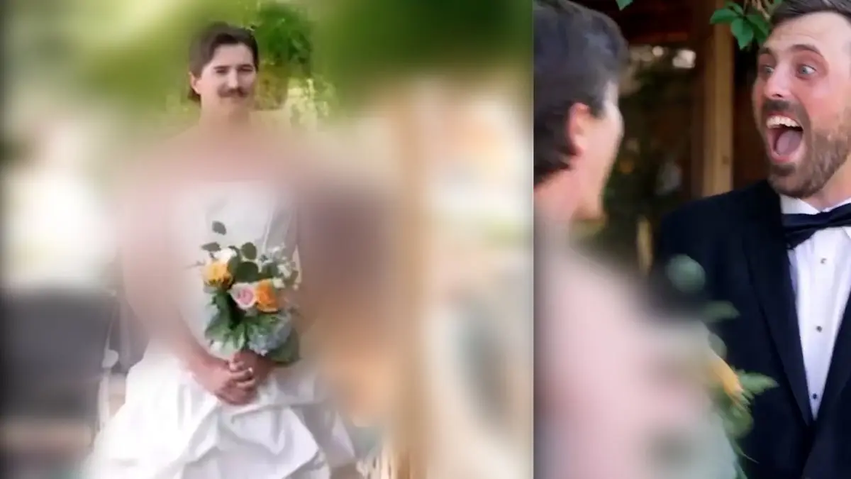 عروس به جای خودش یک مرد را در لباس عروسی کنار داماد فرستاد + فیلم باورنکردنی