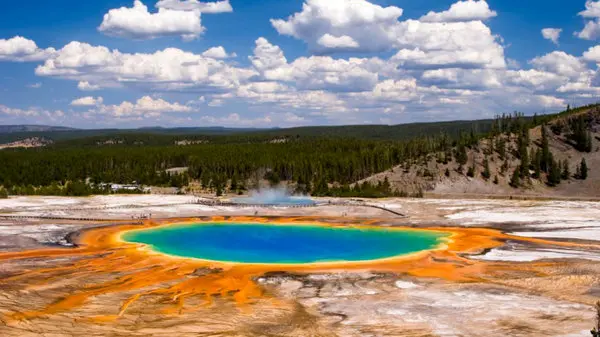 زیباترین دریاچههای دنیا که هوش از سر میپرانند چشمه آب گرم منشوری بزرگ پارک ملی یلواستون بزرگترین در آمریکای شمالی و سومین در جهان است.