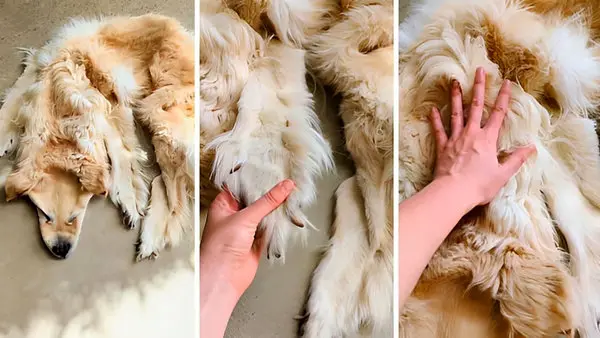 او در ادامه توضیح می دهد که پوست سگ دباغی و تبدیل به چرم شده تا موهای آن نریزد.