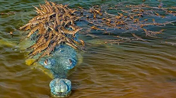 تمساح ها که همیشه در حالت حمله قرار دارند، اما اینبار او را در نقش دفاع کننده می بینیم.