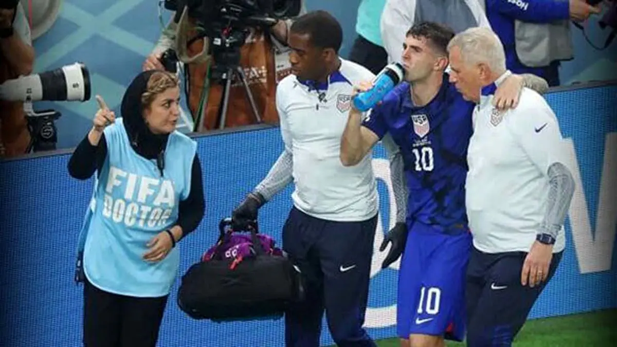 عکسی از پزشک خانم ایرانی در کنار یکی از بازیکنان تیم آمریکا مورد توجه مردم قرار گرفته است.