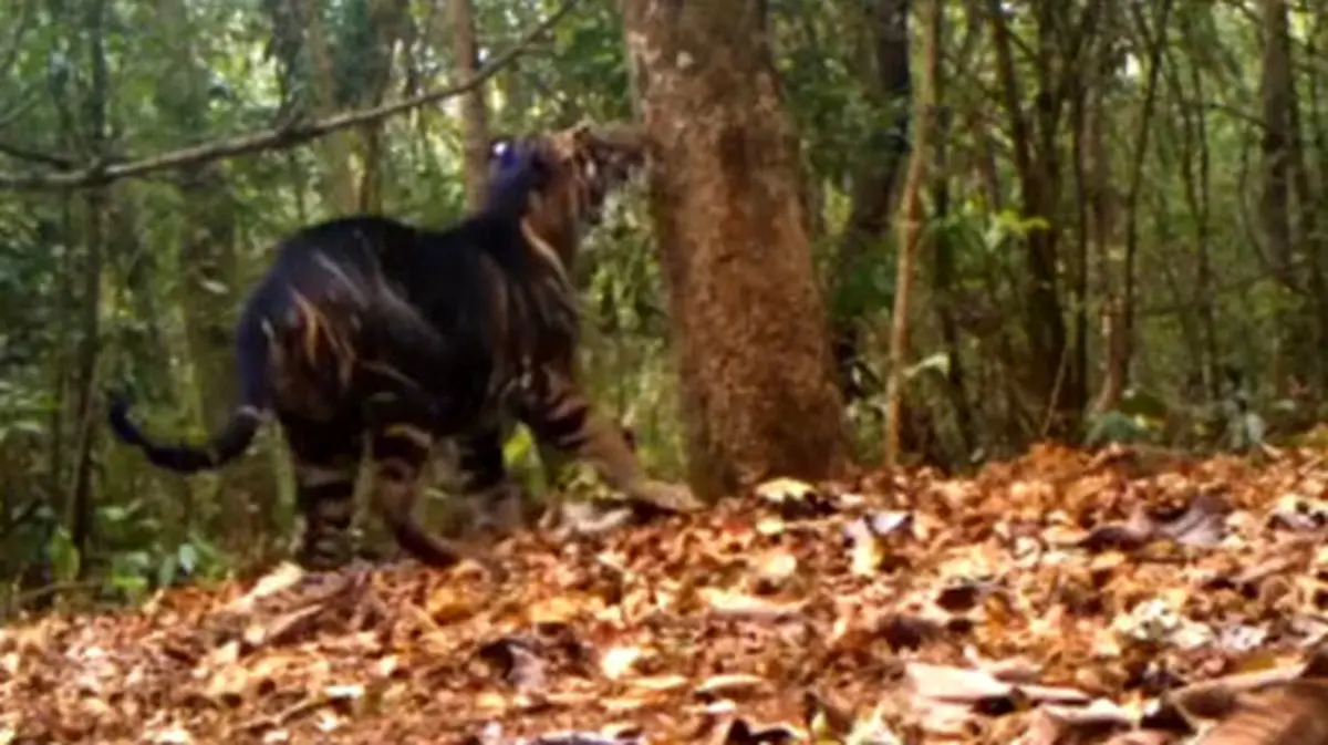 دوربینهای تلهای منطقه حفاظت شده پارک ملی سیملیپال هند تصویری از یک ببر سیاه نادر ثبت کردهاند که امکان دیدنش در طبیعت بسیار کم است.