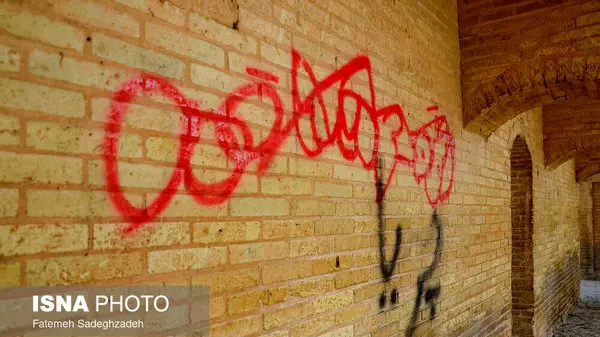 عکس های تاسفبار / شعار نویسی ها در ناآرامی ها سی و سه پل را زشت کرد !
