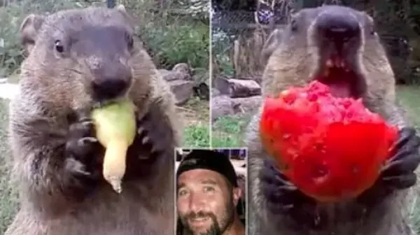 بله این حیوان گویی با کشاورز شوخی می کند و در جلوی دوربین به خوردن محصولات او می پردازد.مارموت سنجابی بزرگ است که ۱۵ گونه دارد. به نظر می رسید مجرم (مارموت) از تمسخر او از زوایای مختلف لذت می برد.