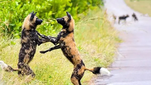 سگ‌های وحشی موجوداتی اجتماعی هستند و در دسته‌های ۳۰ نفره حرکت می‌کنند. سگ‌های وحشی با هم به عنوان یک گروه خانوادگی شکار، بازی و گشت‌زنی می‌کنند.