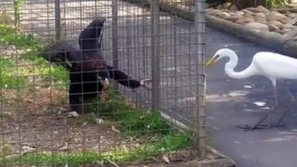 فرادید: شاهد این ویدئو باشید که در آن یک مرغ ماهیخوار سفید زیبا سعی میکند غذای یک عقاب را در حالی در داخل قفس در پارک حیات وحش سیدنی استرالیا است، سرقت کند.