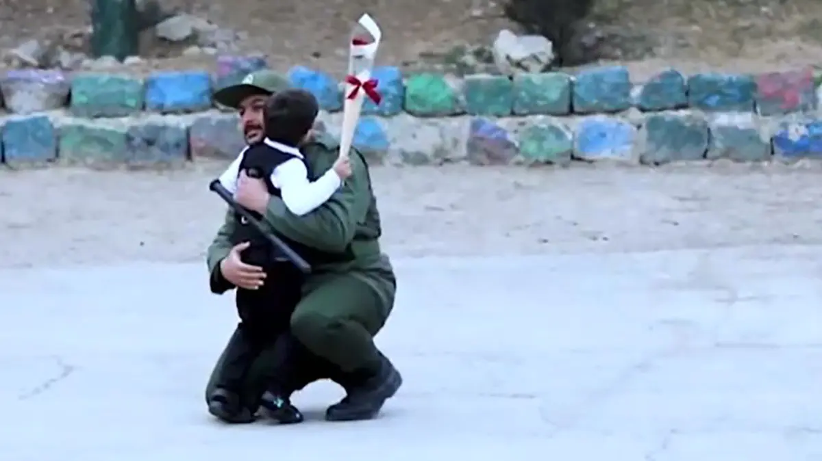 حضور کودک 4 ساله با شاخهای گل در دست در داخل یک پادگان آموزشی موجب غافلگیری یک سرباز می شود.
