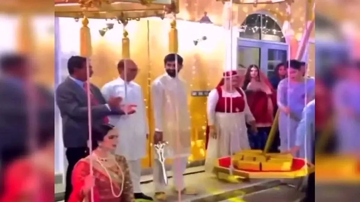 داماد و عروس این مراسم پاکستانی هستند و این کلیپ جنجال گستردهای به راه انداخت و کاربران توئیتر مهریهای معادل وزن طلا برای عروس را اغراق آمیز دانستند.