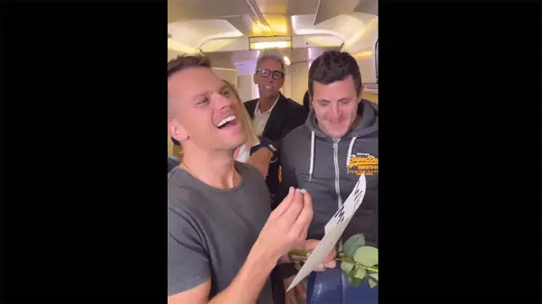 ویدیویی از یک خواستگاری جالب در یک پرواز منتشر شده است. در این پرواز زوج جوانی را می بینیم که در آن دختر روی لباس خود لباس عروس می پوشد و با یک برگه که روی آن نوشته با من ازدواج می کنی؟ سعی بر این دارد تا با اذیت کردن های یواشکی توجه مرد را به خود جلب کند و در نهایت موفق و مرد از دیدن او بسیار خوشحال می شود. این ویدیو به تازگی در فضای مجازی پربازدید شده است اما بسیاری از کاربران به آن نقد کرده اند که می تواند ساختگی باشد.