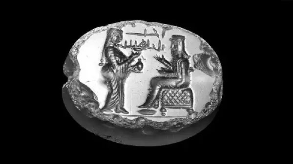 (نگین منقوش به ملاقات یک زن ایرانی و یک نجیب زاده، قرن پنجم قبل از میلاد)