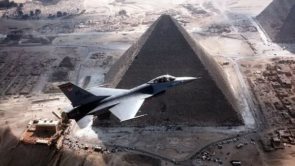 فیلم نمایی حیرت انگیز از پرواز انواع هواپیماهای نظامی آمریکایی بر فراز اهرام ثلاثه مصر