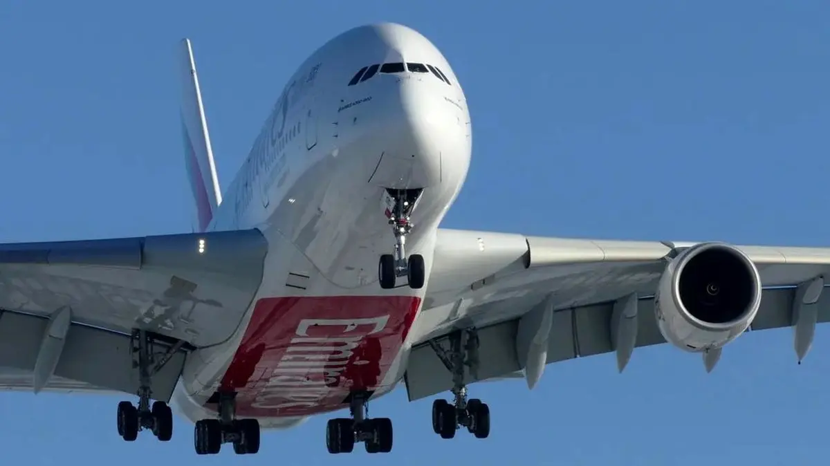 جلال و جبروت ایرباس A380 بزرگترین هواپیمای مسافربری جهان در هنگام فرود