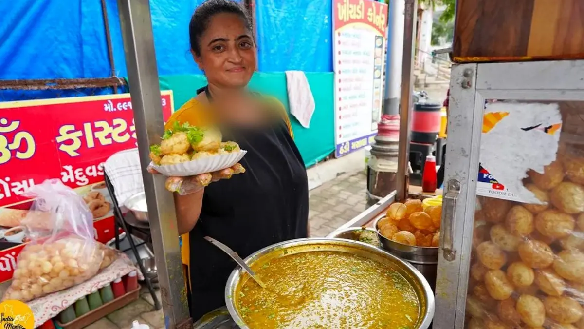 رکنا : این خانم فروشنده مشهور خیابانی در شهر احمدآباد ایالت گجرات هند، مشهورترین راگدا پانی پوری این منطقه را در 5 طعم مختلف و به قیمت 40 روپیه معادل 24 هزار تومان سرو می کند.