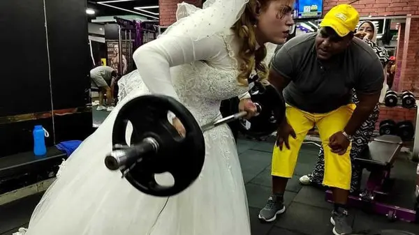 یک زن ورزشکار مصری جشن عروسی خود را در سالن بدنسازی برگزار کرد.
