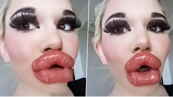 زشت ترین خانم باربی جهان با پروتز لب / خانم لب شتری را ببینید ! + عکس ها قبل و بعد جراحی زیبایی