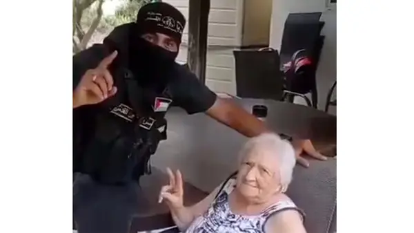 پیرزن اسرائیلی که توسط فلسطینی ها اسیر شده است ظاهرا خیلی ناراحت نیست!