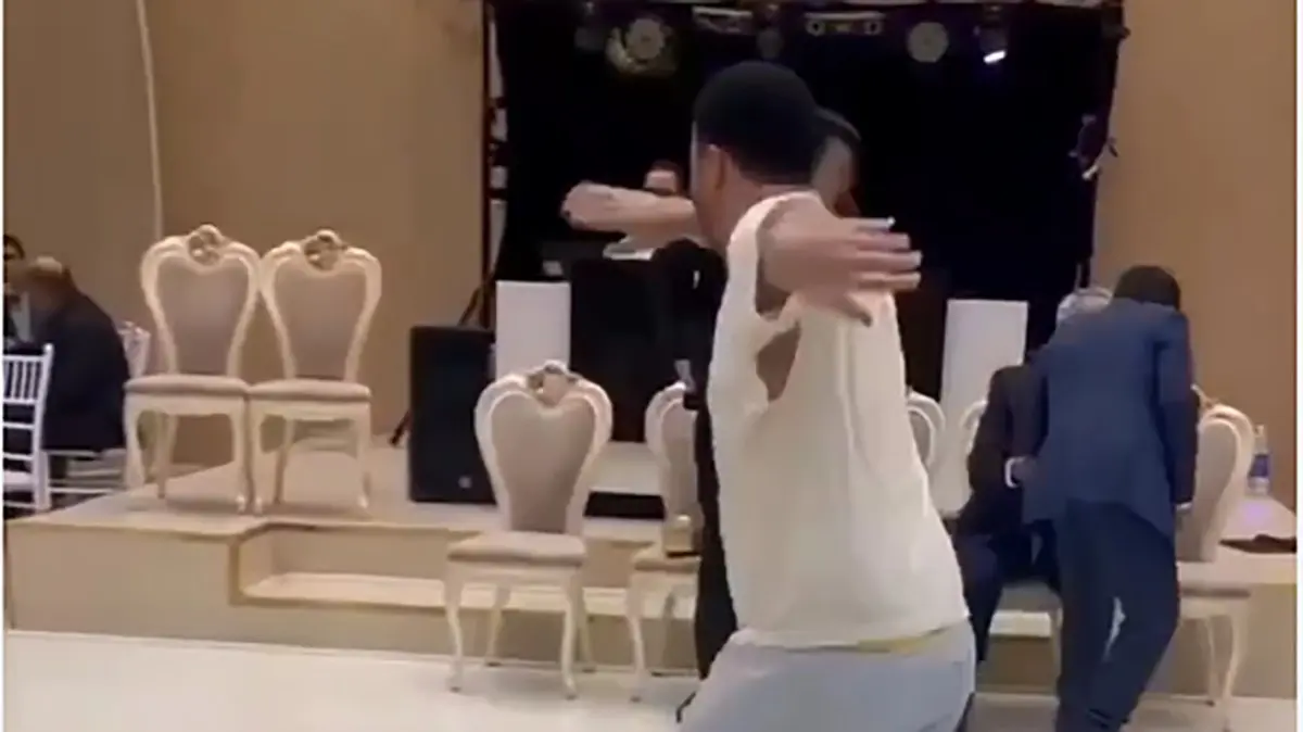 ویدیویی از رقص دوست داماد در تالار عروسی را مشاهده می کنید.