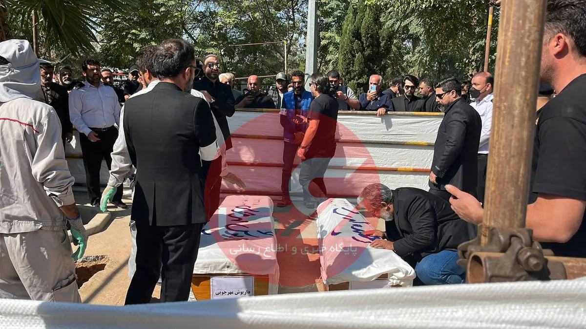 فیلم لحظه خاکسپاری پیکرهای داریوش مهرجویی و همسرش در بهشت زهرای تهران ! + عکس ها