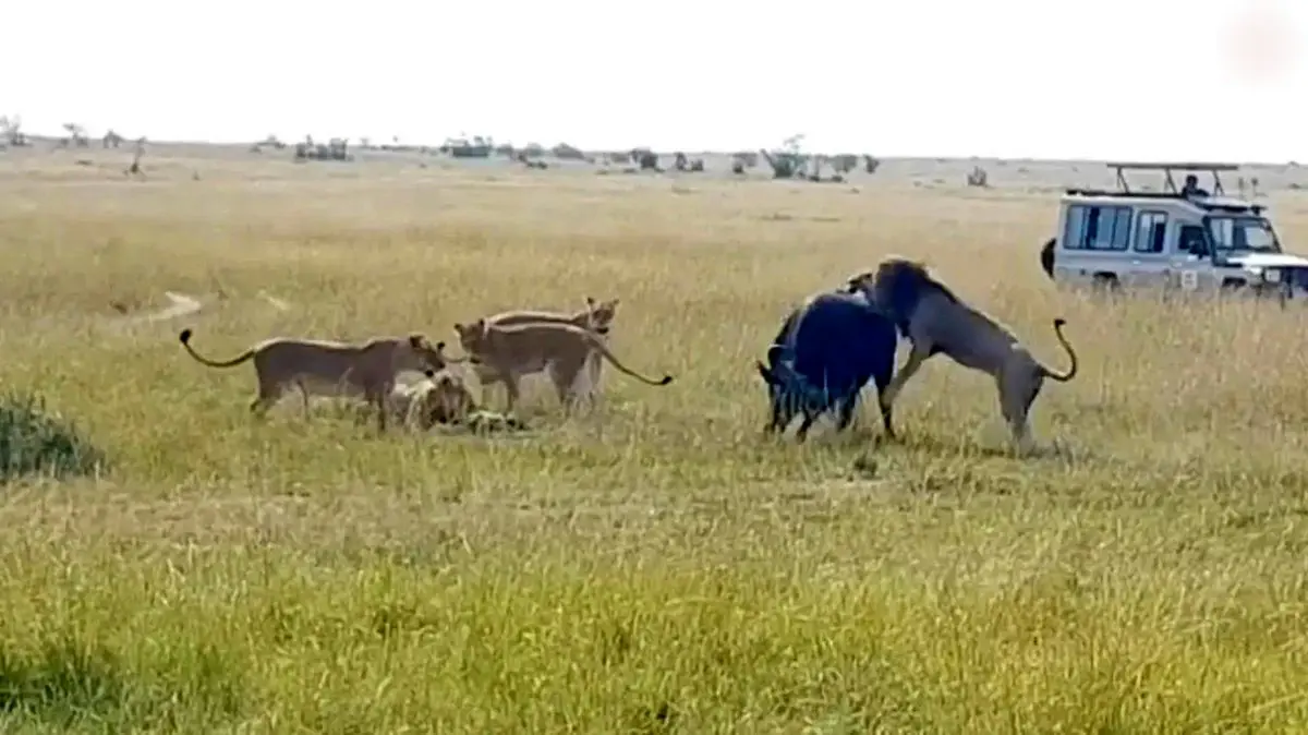 شیرهای نر شکارچیان قدرتمندی هستند و می توانند طعمه های بزرگ از جمله گاومیش ها را به راحتی به کام مرگ ببرند. در واقع شیرهای نر قدرت، چابکی و مهارتهای شکار برای پایین آوردن یک گاومیش را دارند. آنها اغلب در یک گروه با هم همکاری می کنند تا شانس خود را برای شکار موفق افزایش دهند. شیرها از آرواره های قدرتمند و چنگال های تیز خود برای پایین آوردن طعمه خود استفاده می کنند و نواحی آسیب پذیر مانند گردن یا گلو را هدف قرار می دهند؛ در واقع این نشان دهنده قدرت و قدرت شکار آنها است. در ادامه لحظه شکار یک گاومیش توسط یک شیر نر بزرگ با همکاری 6 شیر دیگر را در حیات وحش ماسایی مارا می بینید.