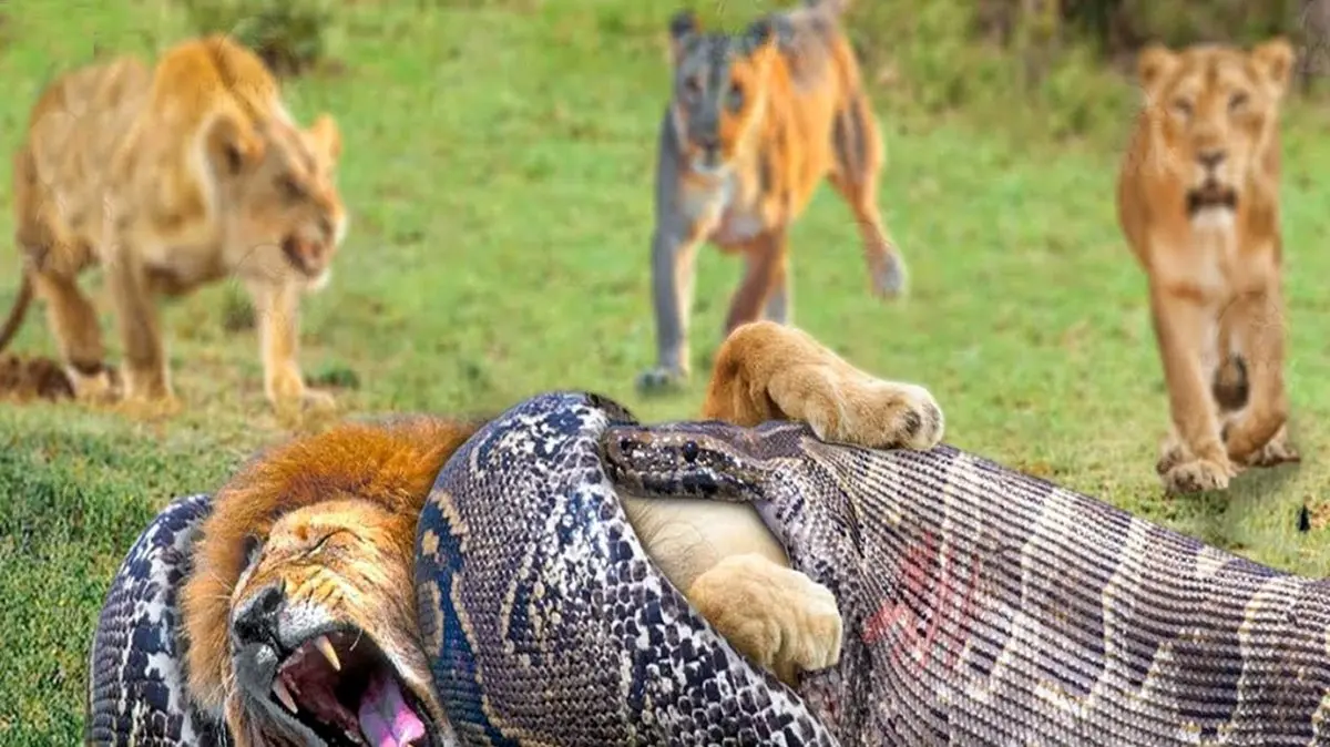 100 لحظه نادر بلعیدن شیر و پلنگ توسط مار پیتون گرسنه  ! + فیلم جذابیت های حیات وحش