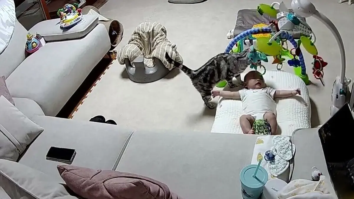 ویدئویی از گربه ‌ای خانگی که به سراغ نوزادی در حال گریه می‌رود و او را آرام می‌کند در شبکه‌های اجتماعی پربازدید شده است. ناگفته نماند که تنها گذاشتن نوزاد با گربه از لحاظ علمی کار درستی نیست.
