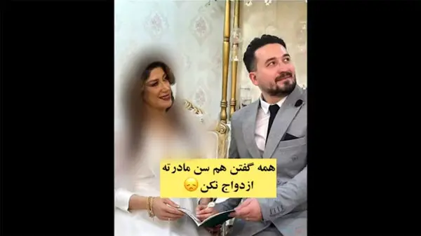 ویدیویی جنجالی در فضای مجازی با عنوان ازدواج مرد جوان با زنی مسن منتشر شده است. صفحه ای که این ویدیو را منتشر کرده نوشته است: همه گفتن هم سن مادرته پشیمون میشی ازدواج نکن اما ما با هر سختی ومخالفتی که بود ازدواج کردیم چون عاشق هم بودیم.
