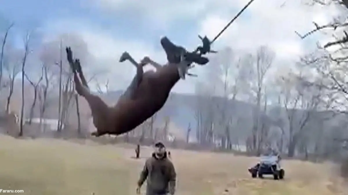فیلم/ شکارچیان یک گوزن را از اعدام با طناب نجات دادند