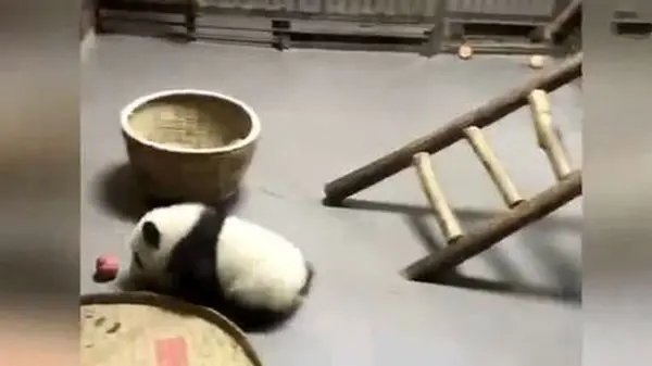 فیلم/ بچه پانداها در حال بازی با نگهبان باغ وحش