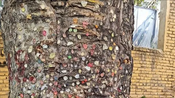 ویدیویی از یک درخت آدامسی عجیب در فضای مجازی منتشر شده است. در قلب محله فرشته تهران خیابان گل رو یک درخت ١٠٠ ساله تنومند از دوره قاجار به یادگار مانده است. این دختر به درخت بخت گشا معروف است و بیشتر کسانی که بخصوص دنبال بخت گشایی در زمینه پیدا کردن شریک عمرو جوونی هستند با چسبوندن آدامس رنگی به مراد دلشان رسیده اند.