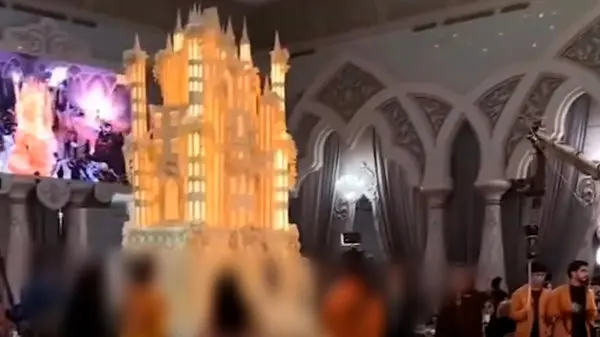کیک عروسی نیم میلیاردی عروس و داماد شیرازی در مراسم ازدواجشان که به صورت یک کاخ درآورده بودند بسیاری از مردم را شوکه کرد و واکنش های متفاوتی را به همراه داشت. البته مشخص نیست این فیلم مربوط به عروس و داماد شیرازی است یا شیطنت فضای مجازی است.