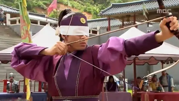در سکانسی از فیلم معروف به سکانس تیر اندازی با چشم بسته جومونگ، مسابقه ای بین جومونگ و تسو و یونگ پو در جهت نمایش توانمدی های پسران امپراتور برگزار گردید.