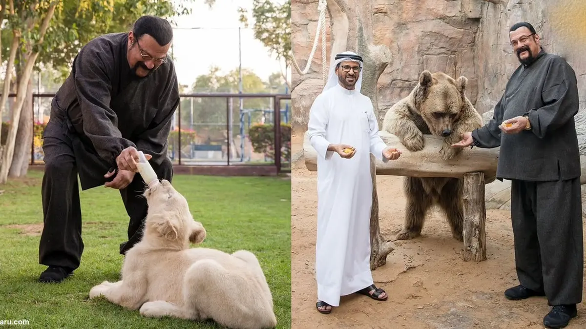 استیون سیگال بازیگر هالیوود و جرج گالووی سیاستمدار اسکاتلندی با حضور در باغ وحش دبی امارات در آنجا از مجموعهای از حیوانات دیدن کردند.
