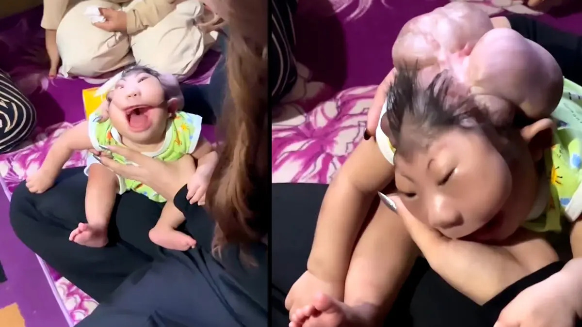 فیلمی از تولد نوزاد عجیب الخلقه منتشر شد که از ناحیه سر و صورت دچار نارسایی و تومور است، فیلم گریه های مادرش نیز دل بسیاری از مردم را خون کرد.