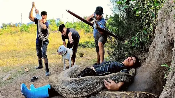 فیلم واقعی / مردی خواب بود که مار پیتون حلقه اش زد !