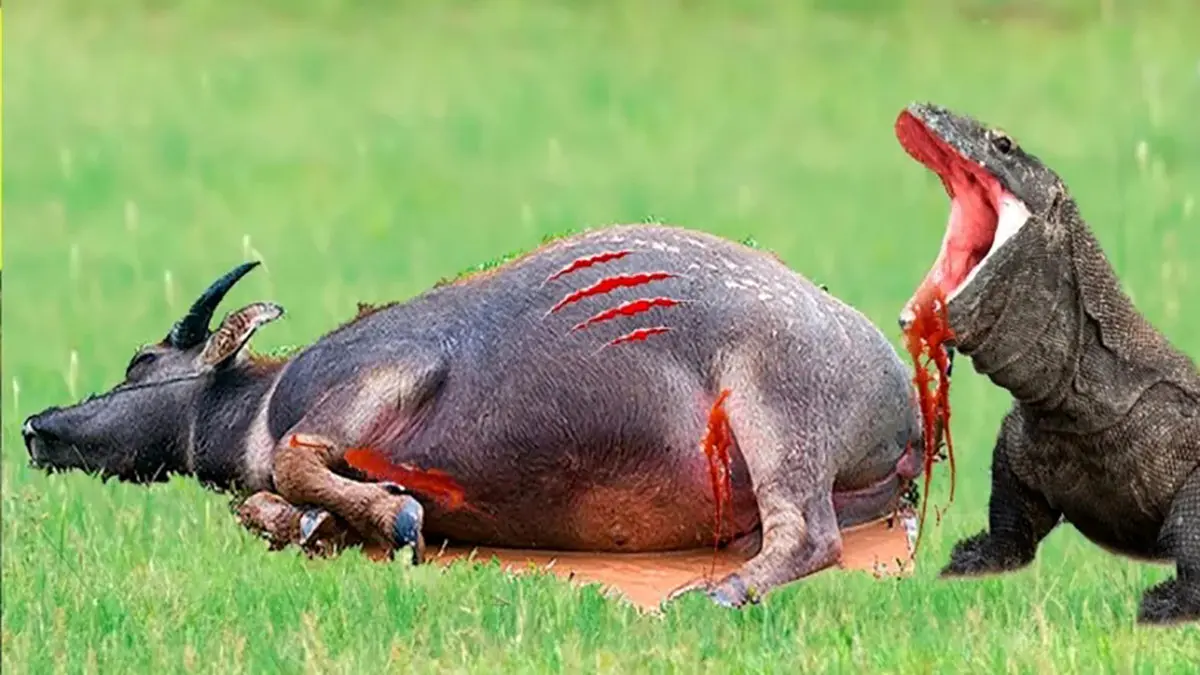 ویدیویی از حمله چند اژدهای کومودو به یم بوفالو عظیم در فضای مجازی وایرال شده است.