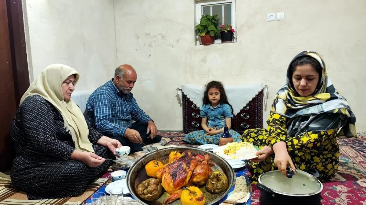 در این ویدئو یک مادر و دختر روستایی آذری را می بینید که به طبخ پلو مرغ کبابی تنوری می پردازند.