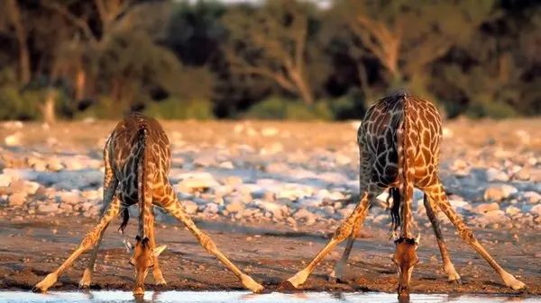 تاکتیک جالب یک زرافه برای غذا خوردن از روی زمین که باعث زحمت زیاد او میشود را ببینید.