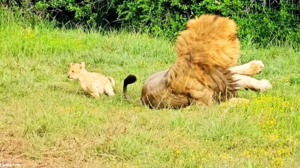 دو توله شیر بازیگوش وقتی سعی کردند از دم پدرشان به عنوان اسباب بازی استفاده کنند، کمی زیاده روی کردند.
