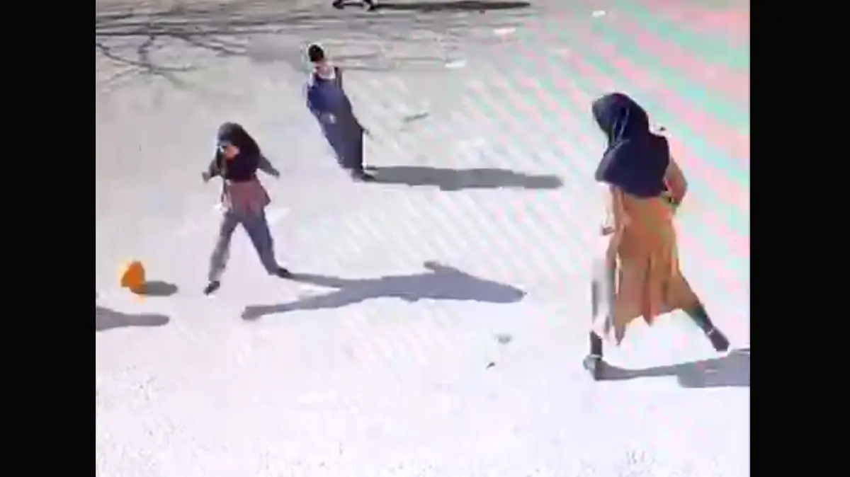 فیلم زمین خوردن خانوم معلم هنگام بازی فوتبال در مدرسه