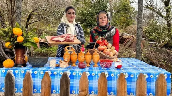 فیلم/ مهارت دیدنی دو بانوی روستایی گیلانی در طبخ غذای محلی با گوشت و بادمجان