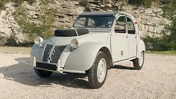 سیتروئن مقدار قابل توجهی از وقت و انرژی خود را صرف ساخت ۲CV کرد تا حد امکان، ارزان و ابتدایی باشد. ۲CV اصلی که در سال ۱۹۴۸ عرضه شد، با یک موتور دوقلو مسطح با ۹ اسببخار قدرت، و همچنین روکش برزنتی که از شیشه جلو تا سپر عقب کشیده شده بود و شیشههای جلو که به سمت بالا میرفت، عرضه شد.