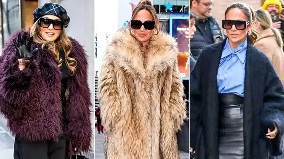 لوپز در حال عکس گرفتن که با ظاهر خز مصنوعی غریبه نیست در مقابل یک بیلبورد برای جشن پروژه آینده خود ایستاد و یک عینک آفتابی بزرگ مشکی ژست زیبایی می گرفت.