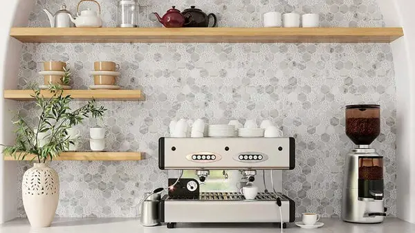 اگر فضای کافی برای قراردادن میز کانتر ندارید، میتوانید از دیوارهای خانهتان استفاده کنید. باکس دیواری یکی دیگر از ایدههایی است که در فضاهای کوچک مورد استفاده قرار میگیرد. این باکسها برخلاف شلفها چهارچوب دارند و ابزار و تجهیزات قهوه را میتوانید در آنجا جای دهید. جنس این نوع از باکسها با توجه به طراحی دیگر بخشهای خانه و آشپزخانه، متفاوت خواهد بود.